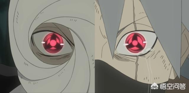 也就是说卡卡西一开始的写轮眼就是带土赠予他的双勾玉写轮眼。只不过这只双勾玉写轮眼并没有维持多久,后来在卡卡西经历不幸后再次进化。