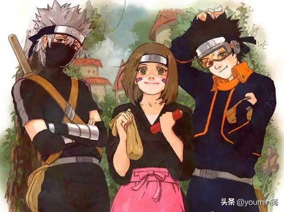 卡卡西,带土和琳是波风水门班的学生,就和卡卡西带鸣人他们一样,一个上忍带三个下忍,三人团结合作。